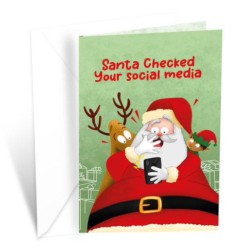 Prime GreetingsFront Text: Santa Checked Your Social Media Inside Text: and You’re Getting a dictionary and a Bible for Christmas Made in America: Premium Env...