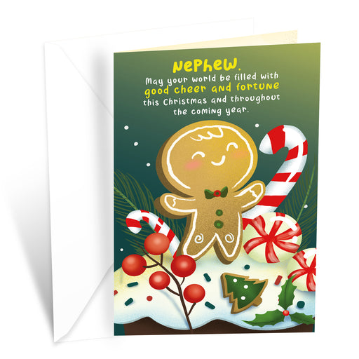 Prime GreetingsFront Text: Nephew, May your world be filled with good cheer and fortune this Christmas and throughout the coming year. Inside Text: May the pea...