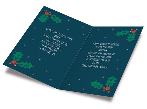 Prime GreetingsFront Text: Merry Christmas to my nephew. Inside Text: We may not see each other daily or get to spend a lot of time together, but you are alway...